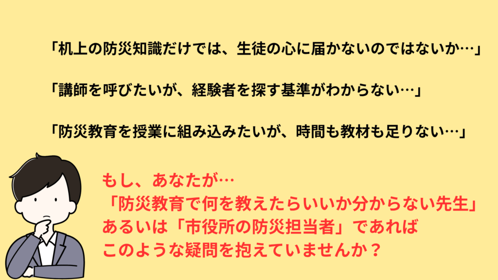 • 防災イベントで誰を講師に呼んだらいいか分からない